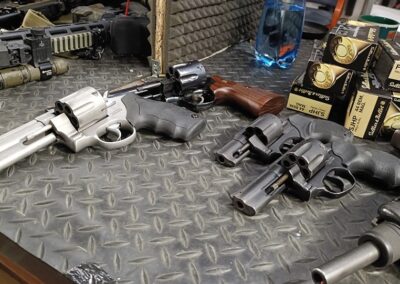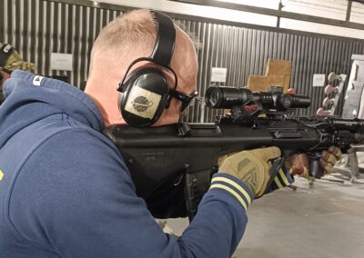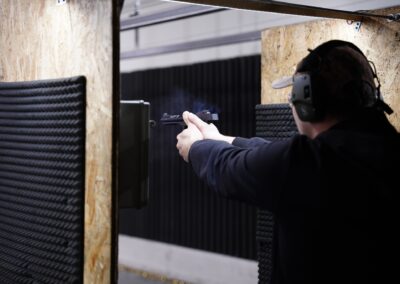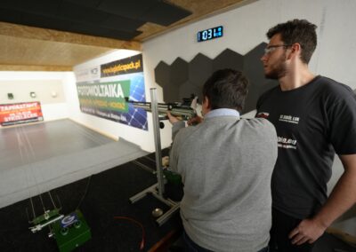 Nasza strzelnica dysponuje 25-metrową osią strzelecką z sześcioma dobrze wyposażonymi stanowiskami strzeleckimi. Każde z nich posiada tarczociąg, co umożliwia komfortowe i efektywne strzelanie. Niezależnie od tego, czy dopiero zaczynasz swoją przygodę ze strzelectwem, czy jesteś doświadczonym zawodnikiem, na pewno znajdziesz u nas idealne warunki do uprawiania swojego ulubionego sportu.